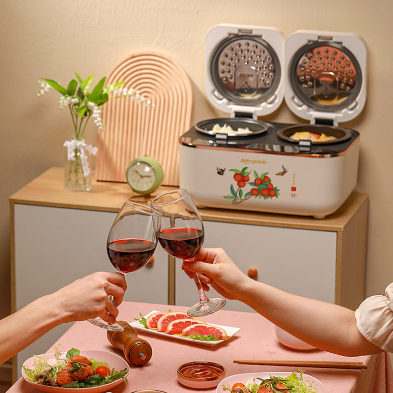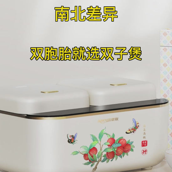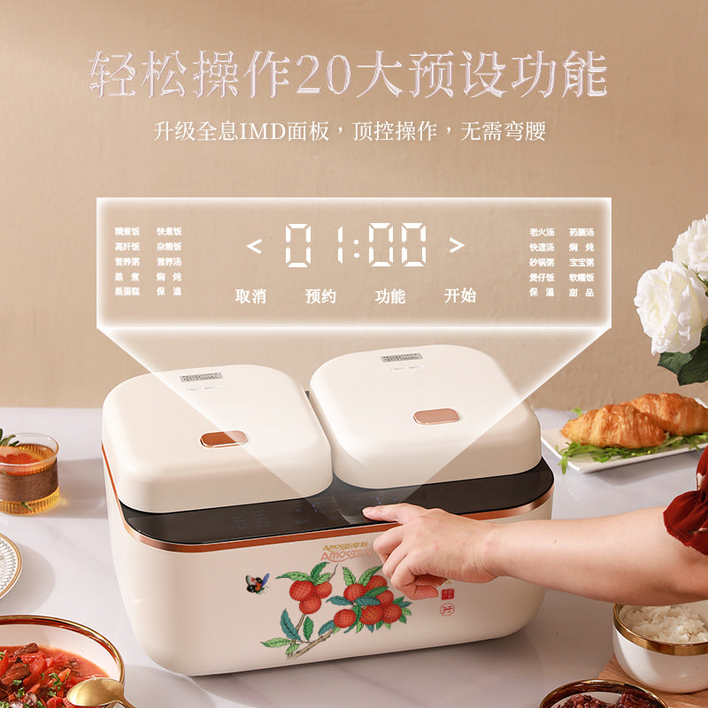 预售1.11 AMOS 亚摩斯 诺丁汉仓 孖孖煲不粘锅双胆电饭煲AS-MS80W (国潮礼盒款)
