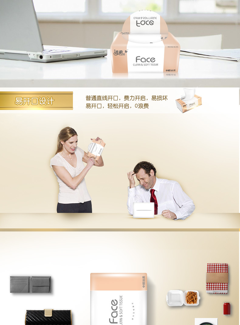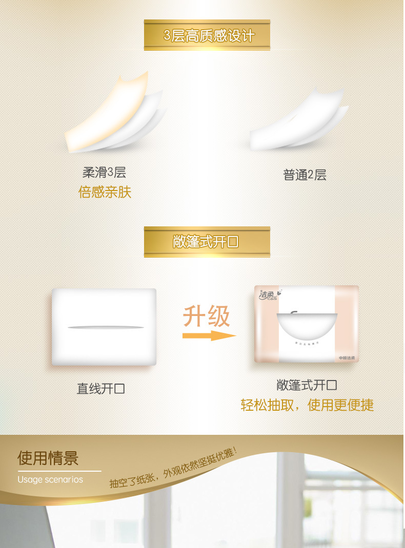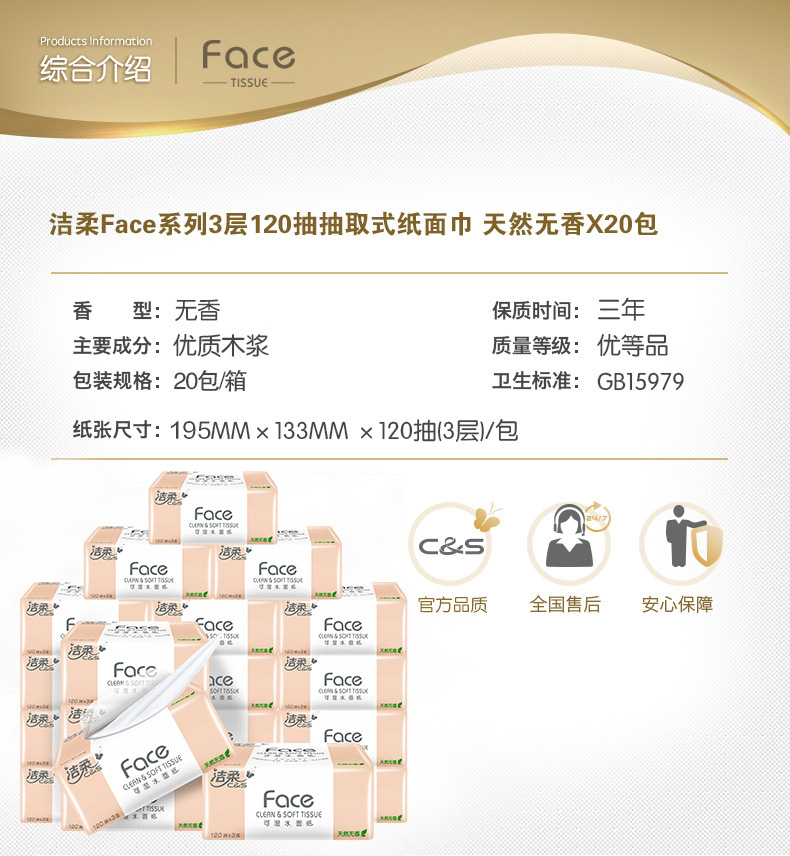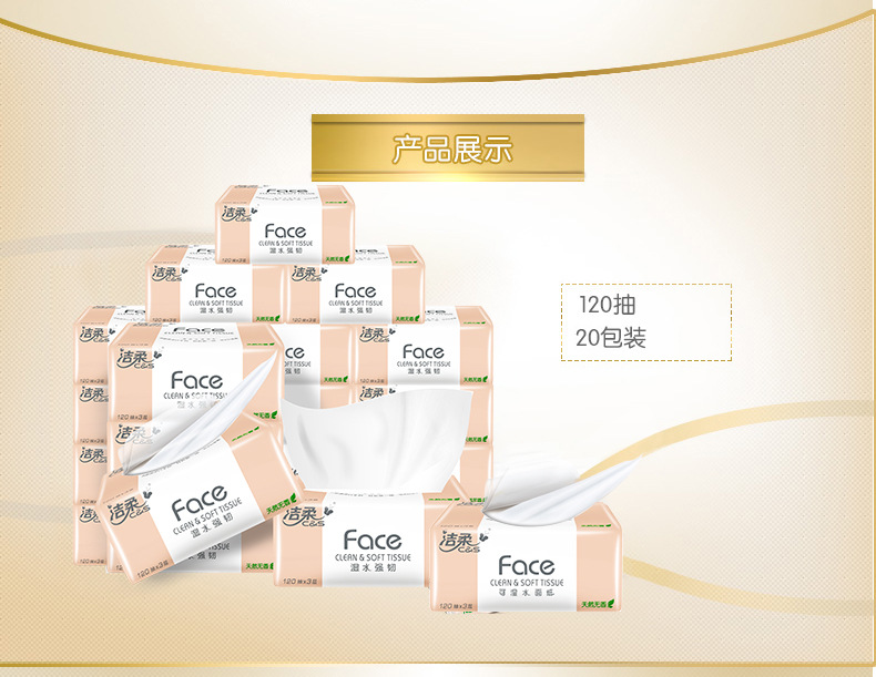 Pre-order 8.6 Jierou Facial Tissue, 3-Ply, 120 Sheets, Size M, 20-Pack Carton